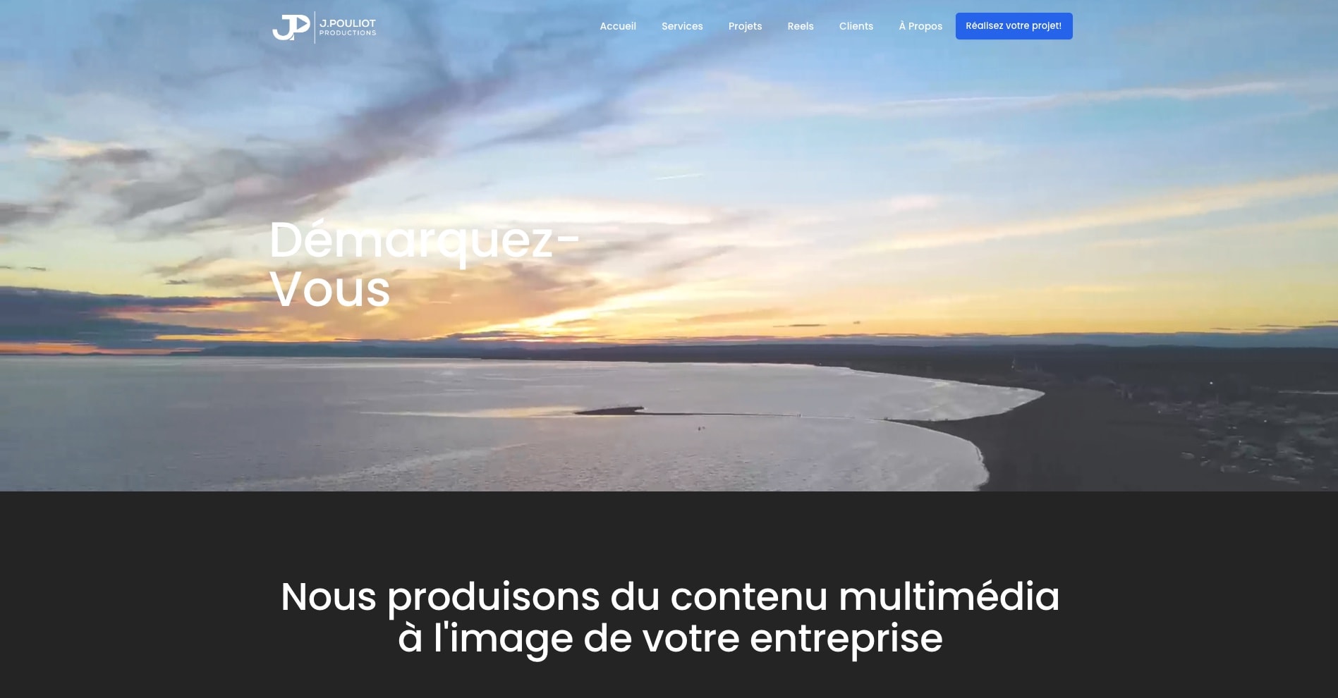 Fondée en 2022, JPouliot Productions regardait pour se créer une nouvelle image. En 2023, l'entreprise nous a fait confiance pour leur faire une refonte de leur site web permettant de donner une apparence plus prestigieuse ainsi que démontrer plus clairement leur offre de service.