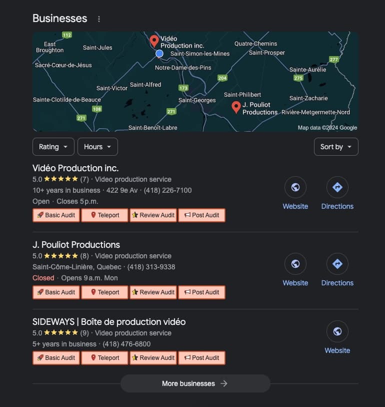 Ensuite, on a travaillé sur le rayonnement de la compagnie. On a donc travaillé sur le SEO local de la compagnie, en créant une page Google My Business et en optimisant le site web pour le SEO local.